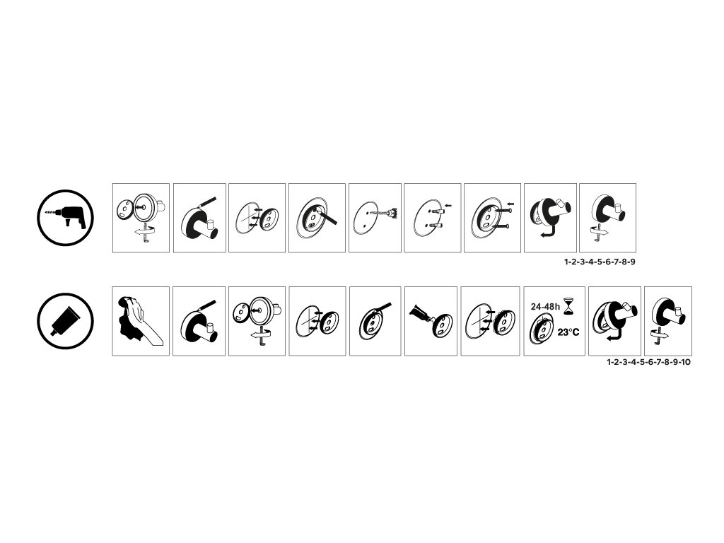 | Montáž: | NIMCO všeobecný ilustrovaný návod k montáži výrobků. Součástí výrobku jsou šrouby a hmoždinky. Lze je použit do betonu a obkladu, který má tloušťku do 8 mm. Správná kombinace použití hmoždinek a šroubů pro: BETON – hmoždinka pr. 6, vrut min. 3,5*40 mm CIHLA – hmoždinka pr. 6, vrut min 3,5*40 mm RIGIPS – hmoždinka uzlovací do sádrokartonu a dutých materiálů pr.6 mm, délka hmoždinky 35 mm, vrut 3,5*40 mm OBKLAD – hmoždinky a šrouby- nutné použít delší o tloušťku daného obkladu (dlažby) Časté chyby při montáži! -vrtání mezi spáry -použití nesprávné velikosti (průměru a délky) hmoždinek a šroubů -použití nesprávné velikosti vrtáku -zanesený otvor po vyvrtání -použitá hmoždinka vyčnívá nad obklad. Hmoždinka musí být v jedné rovině s obkladem. V opačném případě výrobek na obkladě nedrží a vyviklá se! -výrobek nebude na stěně uchycený v jedné rovině, pokud budou chybně vyvrtané otvory |