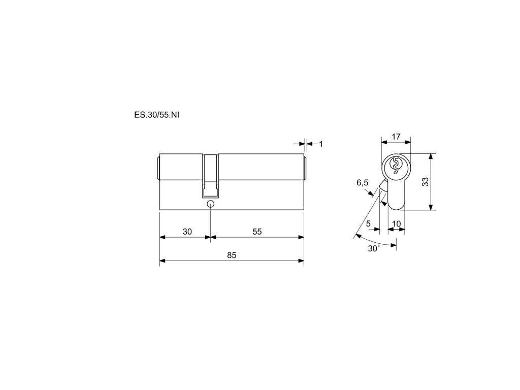 Bezpečnostní oboustranná 6stavítková vložka Euro Secure RICHTER ES.30/55.NI
