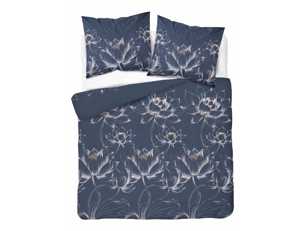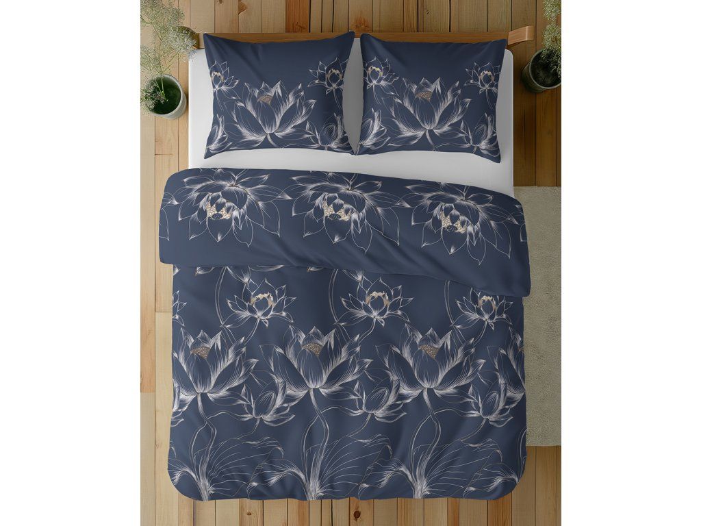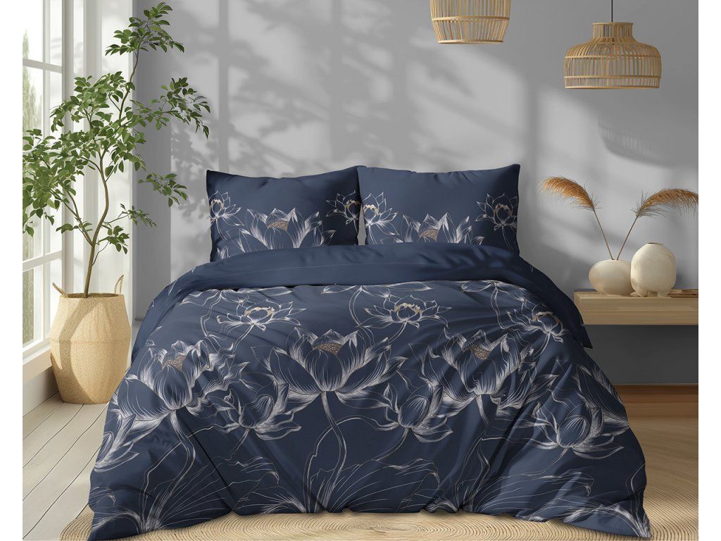 Souprava 1+1 ložního bavlněného povlečení ,Lekníny na modré