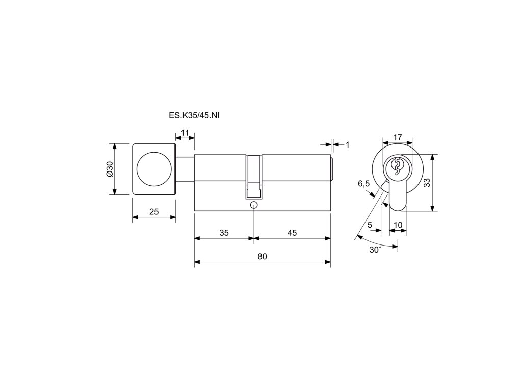 Bezpečnostní knoflíková 6stavítková vložka ES.K35/45.NI