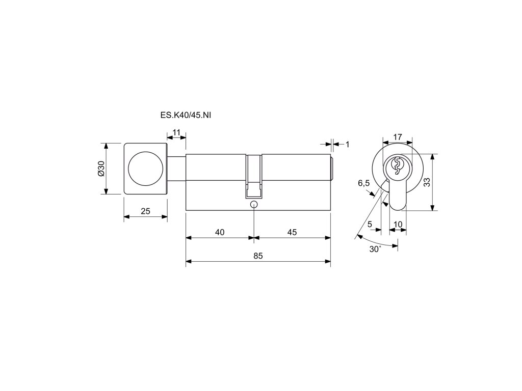 Bezpečnostní knoflíková 6stavítková vložka ES.K40/45.NI