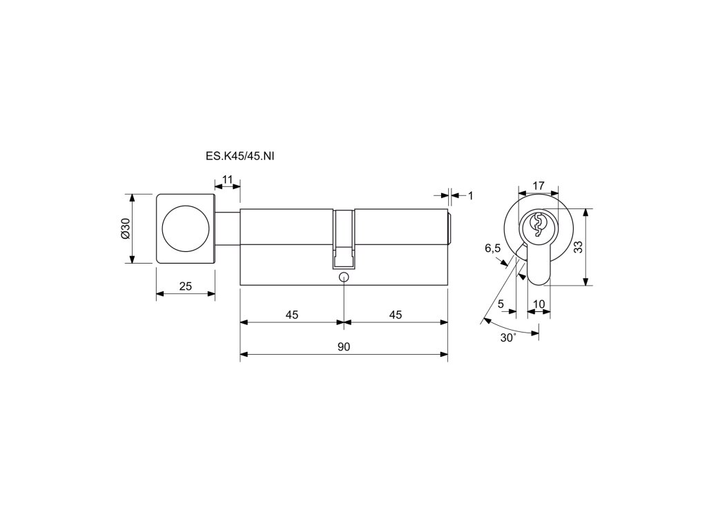 Bezpečnostní knoflíková 6stavítková vložka ES.K45/45.NI