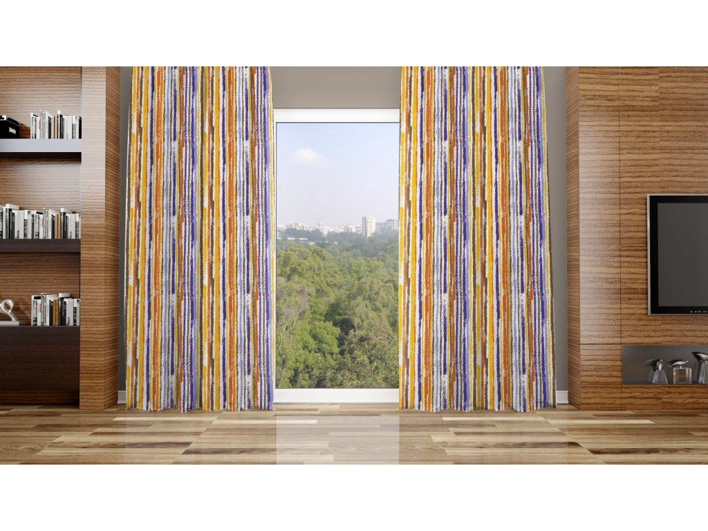 | Vzor závěsu: | proužek žlutofialový |