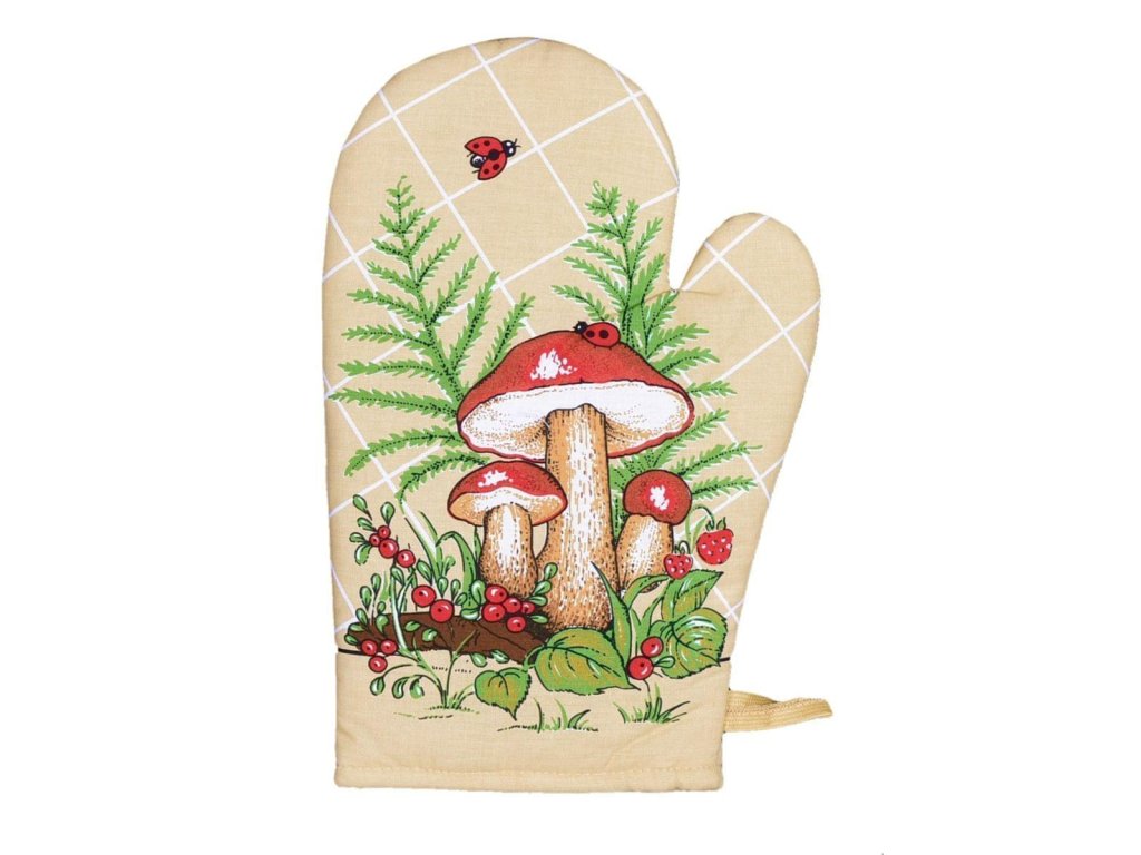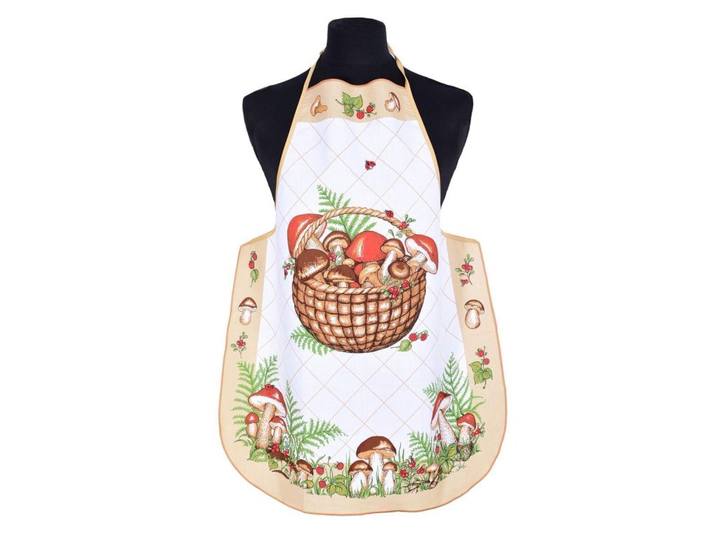 Zástěra a chňapka, Hřiby, béžová