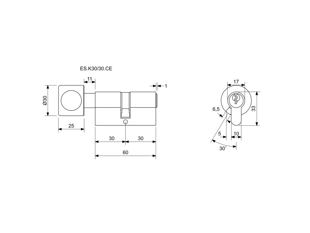 Bezpečnostní knoflíková 6stavítková vložka s odolností proti odvrtání a nedestruktivní dynamické metodě (tzv. bumping)