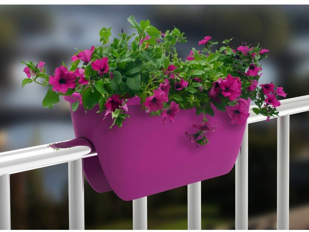 Balkónový květináč Ovi 60 cm má otvor pro odtok dešťové vody. Připevňuje se pomocí úchytů ve spodní části, je vhodný pro jakékoliv oválné i ploché balkonové zábradlí do maximální šířky 6 cm.