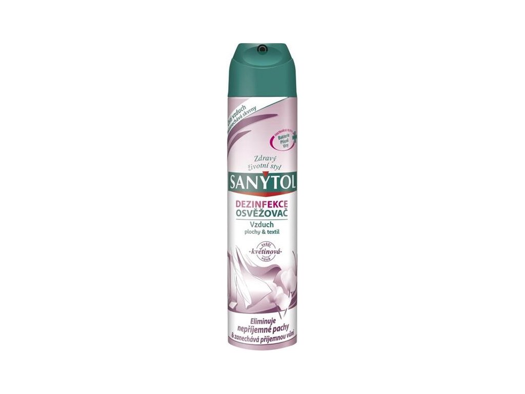 Sanytol dez.osvěž.vzduchu-květinová vůně 300 ml Dezinfekční osvěžovač vzduchu, povrchů a textilií s květinovou vůní. SANYTOL vyčistí vzduch a vydezinfikuje povrchy v jednom jediném kroku. Jeho složení zajišťuje dokonalou hygienu a zanechává příjemně svěží vůni. Zahubí 99,9 % bakterií, plísní a virů, včetně viru chřipky typu A (H1N1). Dezinfikuje a čistí. Absorbuje a ničí pachy tím, že odstraňuje jejich příčinu (mikroby). Působí na vzduch, povrchy a bytové textilie. Nezanechává skvrny, k textiliím je šetrný. Příjemně provoní celou domácnost květinovou vůní. Obsah: 300 mlDoplňkové parametry