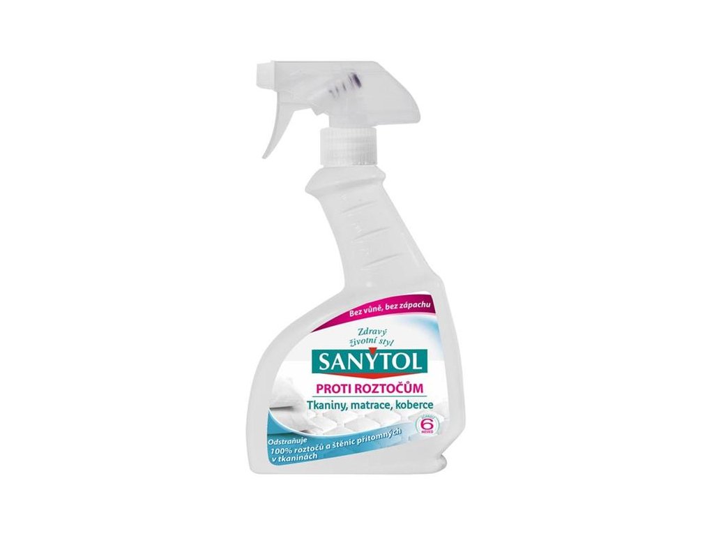 Sanytol proti roztočům 300 ml Prachový roztoč (Dermatophagoide pteronyssinus) je jedním z hlavních spouštěčů alergií a alergických reakcí, a to zejména těch, které jsou spojeny s dýchacími problémy. I přes skutečnost, že roztoči se vyskytují během celého roku, můžeme si povšimnout, že alergické reakce se zhoršují zejména na jaře a na podzim. SANYTOL vyvinul prostředek, který v 100 % případů zlikviduje nejen tyto roztoče, ale také blechy a štěnice. Tento prostředek zabraňuje jejich šíření a lze jím vyčistit celou domácnost. Zahubí 100 % prachových roztočů. Zahubí 100 % štěnic. Prokázaná účinnost po dobu 6 měsíců. Snižuje aktivitu alergenů. Nezanechává skvrny. Ideální pro textilie, matrace aj.Doplňkové parametry