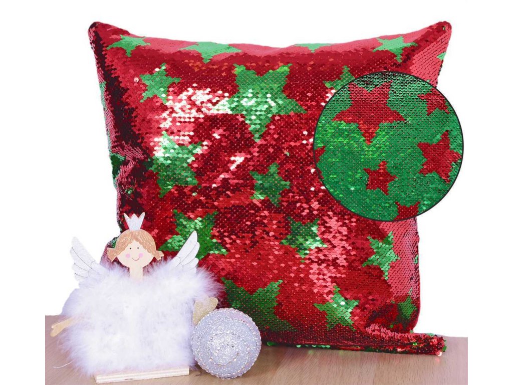 Forbyt, Návlek na polštář, Efekt flitr Hvězdy, 40 x 40 cm, červenozelené