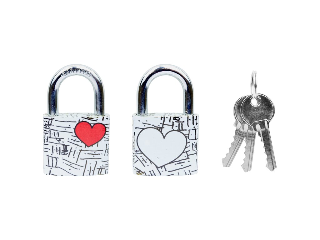 Litinový zámek v blistru s barevným potiskem a prostorem pro vepsání jmen RICHTER RV.OVAL.38.JU2