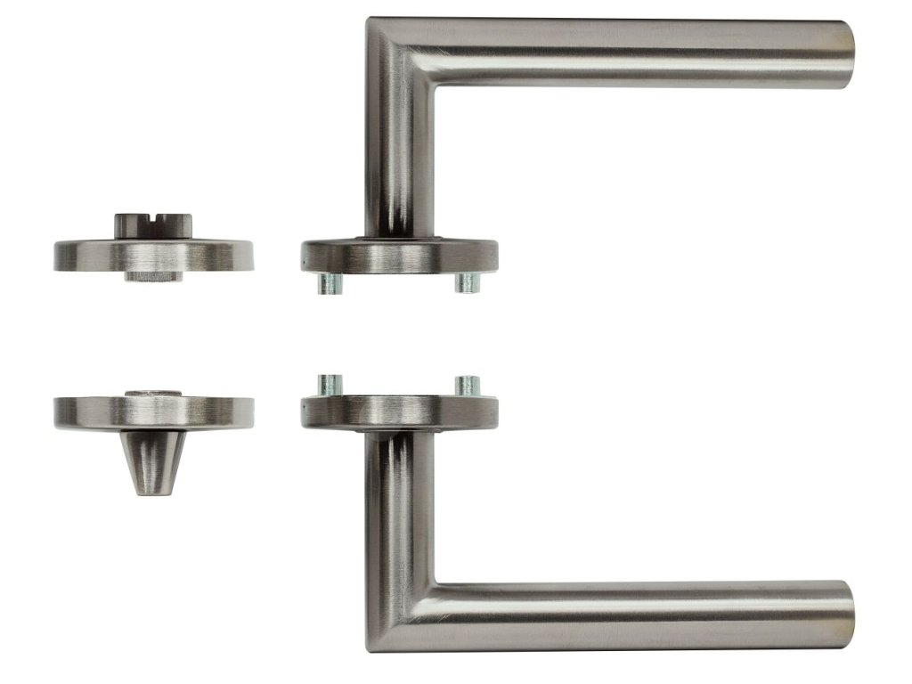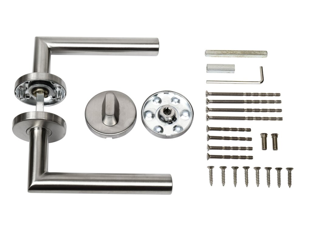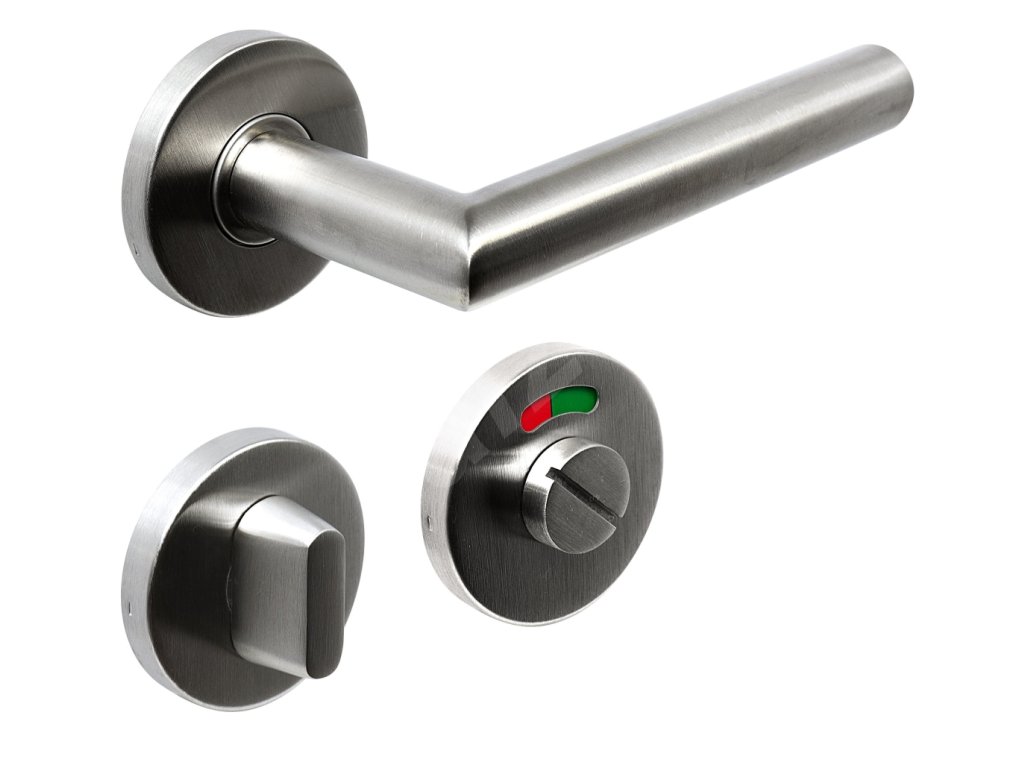 Nerezové kování na kulatých rozetách s vratnou pružinou klik RICHTER RK.L-FORM.WC.N