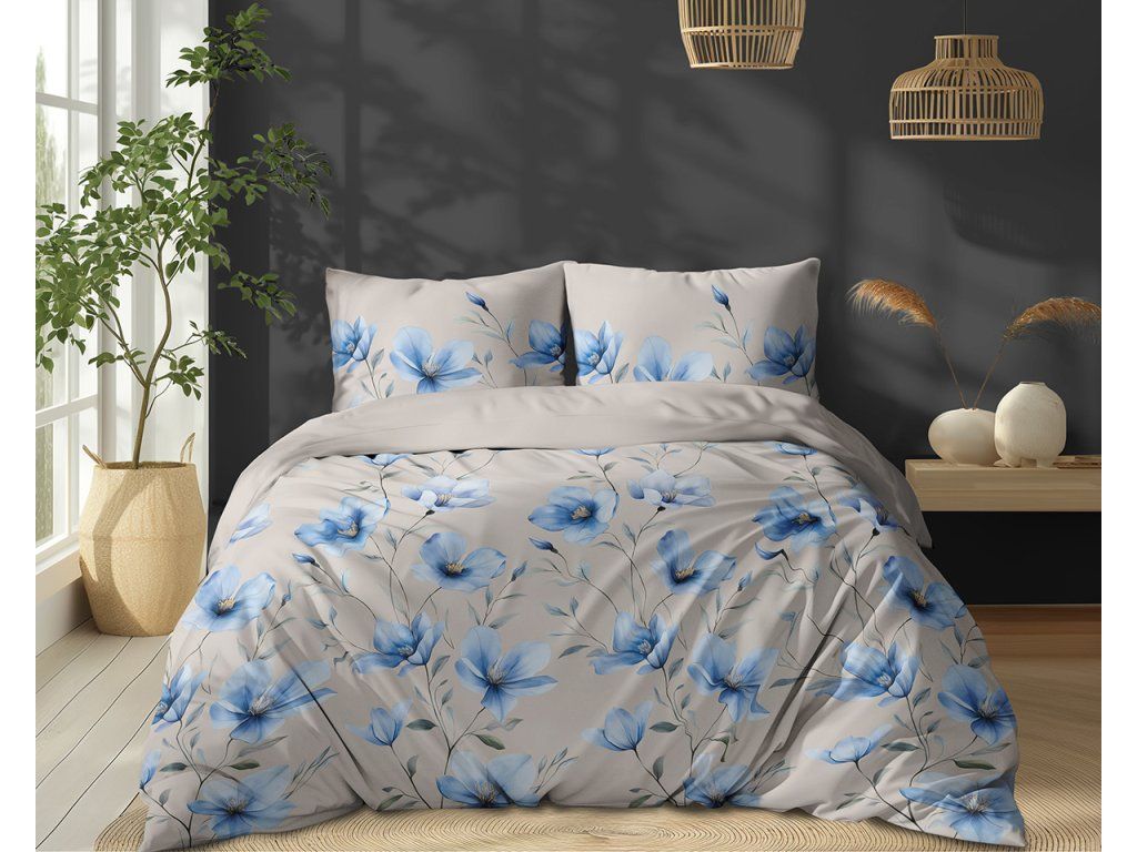 Souprava 1+1 ložního bavlněného povlečení, Máky modré