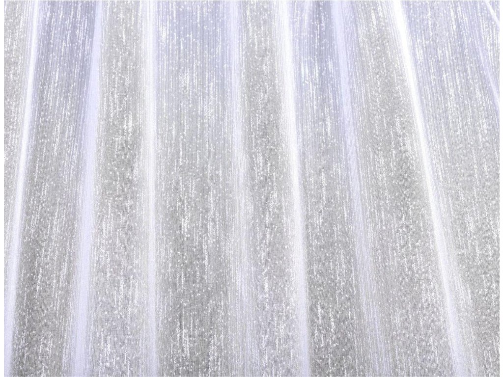 Záclona metráž Deštík bílá 300. Zvolte, jestli chcete dodat pouze metráž nebo si k metráži přejete i šití. Šití obsahuje kompletní úpravu metráže tak, abyste ji mohli rovnou pověsit. Množství metráže vybírejte s následující rezervou podle zvoleného zavěšení: Na žabky: + 6 cm šířky pro obšití obou boků + 6 cm výšky pro obšití spodního a horního okraje (metráž bez olůvka) + 3 cm výšky pro obšití horního okraje (metráž s olůvkem) Na řasící pásku (háčky) + 6 cm šířky pro obšití obou boků + 3 cm výšky pro obšití spodního okraje (neplatí pro metráž s olůvkem) + 2 cm výšky pro našití řasící pásky Na tyč (tunýlek) + 6 cm šířky pro obšití obou boků + 3 cm výšky pro obšití spodního okraje (neplatí pro metráž s olůvkem) + 10 cm výšky pro ušití tunýlku na tyč Do poznámky prosím pro kontrolu zadejte požadovanou velikost záclony/závěsu po ušití a nařasení. Např.: Potřebuji 3 ks závěsu šířky 140 a výšky 200 po nařasení. Doporučujeme prát na 30 stupnňů a žehlit za vlhka.