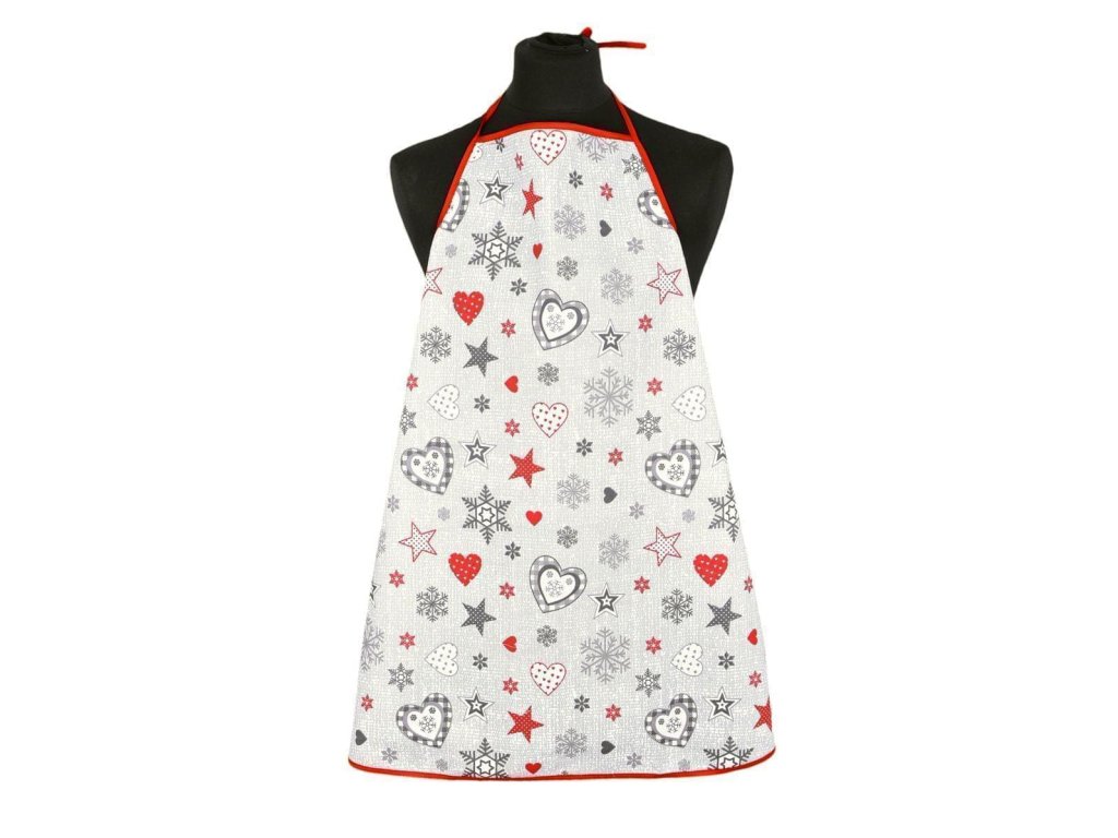 Zástěra kuchyňská Vánoční hvězdy a srdce červenošedá
